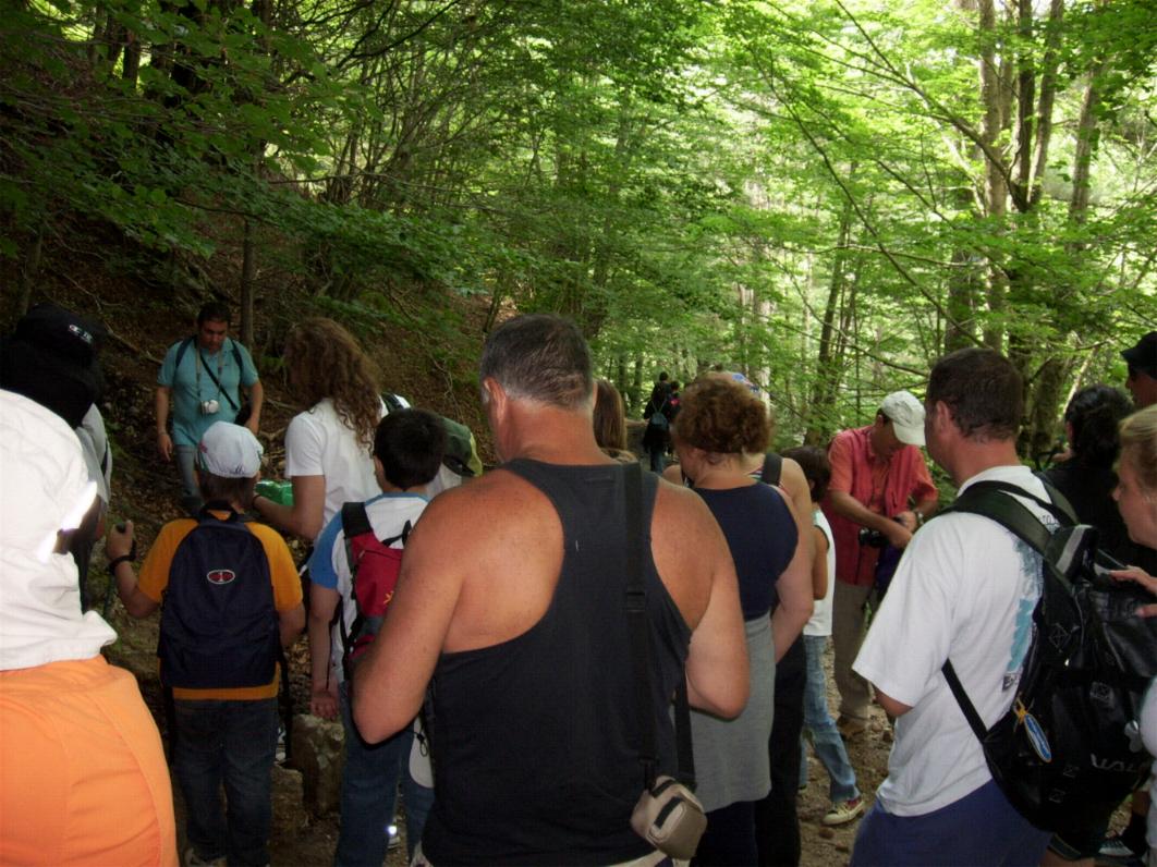 Giovedì 13 Agosto 2009 ESCURSIONE ALLE CASCATE MAESANO IN ASPROMONTE Appuntamento in Piazza Municipio alle ore 8.00. Si parte alle ore 8.45 alla guida dell'esperto Bruno Tripodi, almeno 35 coraggiosi, alcuni provenienti anche da Montebello e da Masella. Dopo circa 3/4 d'ora in macchina si raggiunge la Diga sul Menta. Lasciate le auto ci si avventura lungo un tortuoso viottolo sterrato prima in piano e poi in discesa fino a raggiungere le meravigliose cascate. Spettacolo favoloso si presenta agli occhi degli escursionisti a metà della discesa. Sul versante opposto si possono ammirare in tutta la loro maestosità i tre salti dell'acqua proveniente da una strettissima gola rocciosa. Ad ogni salto un piccolo laghetto di acqua limpida e fredda, fino al più grande posto a conclusione dell'ultimo salto. Un'altezza di quasi un centinaio di metri, il rumore dell'acqua copre il silenzio della Caldera ed il vocio festoso e meravigliato degli escursionisti. Raggiunto lungo il torrente, tra passaggi stretti, rocce scivolose e guadi insidiosi, il lago formato alla base del terzo salto, i più coraggiosi ed altrettanto preparati, in un batti baleno in costume da bagno si tuffano nelle acque freddissime. Poderose nuotate e tuffi spettacolari coinvolgono grandi e piccoli. Dopo qualche ora, spossati e stanchi, una colazione a base di pane casereccio farcito con capocollo, soppressata innaffiato da vino locale. Tra i presenti anche persone non calabresi a testimonianza che la bellezza selvaggia del luogo piace a tutti gli amanti della natura. Qualche amico buontempone mi ha immortalato durante l'escursione, cercando di mettere in evidenza le difficoltà affrontate con dignità, nonostante le sigarette fumate e l'età del sottoscritto. SEGUONO ALCUNE FOTO DEI NOSTRI AMICI ESCURSIONISTI I VIDEO DELLA GIORNATA